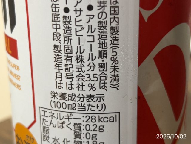 スーパードライはスーパードライなんでしょうけど、普通のスーパードライとの違いはアルコール分です。