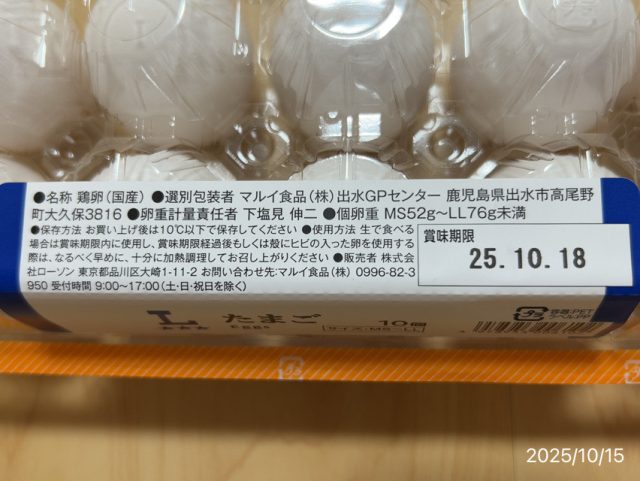 cette fois、コンビニのローソンさんで10個パックのたまごを買いました。