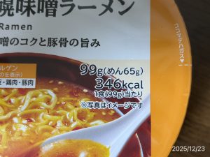 IMG_8722 2025/12/23 munejyuka Hinterlasse einen Kommentar Artikelnavigation Vorherigen Postローソンさんの”スープ激うま!札幌味噌ラーメン”をしばく!~2025/12/23